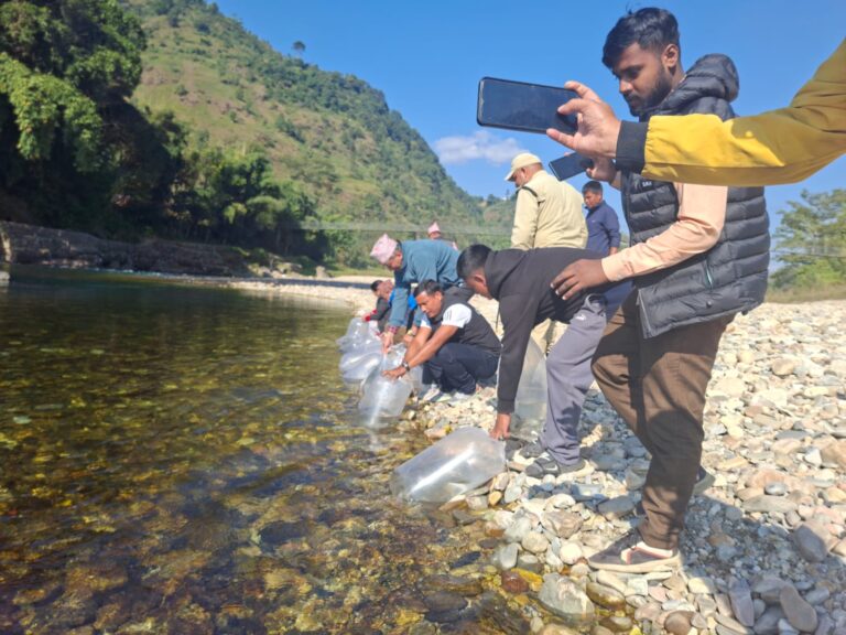स्याङ्जा २ मंसिर । “जलिय जैविक विविधताको प्रवद्र्धन, खाद्य तथा पोषण सुरक्षामा सम्बद्र्धन” भन्ने नाराका साथ विश्व मत्स्य दिवसको अवसर पारेर आँधीखोलामा माछाका भुरा छाडिएको छ ।
