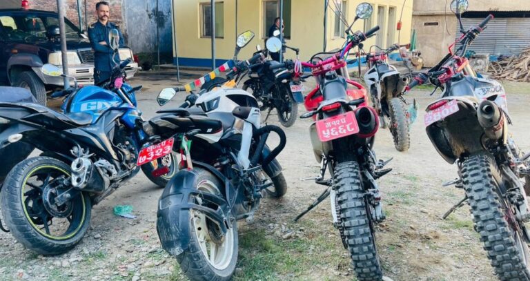 ध्वनी प्रदूषण हुने गरी चर्को आवाजमा चलाइएका ग १२ प ५६६८ र ग १५ प २४०० नम्बरका मोटरसाइकल हुन । यसैगरी, कागजपत्र नभएका ग १६ प ८२३९ र लु ७६ प ७३२३ नम्बरका मोटरसाइकल रहेकोे प्रहरीले जनाएको छ । ती साधन प्रहरीले नियन्त्रणमालिई आवश्यक कानूनी कारवाही अघि बढाएको जनाएको छ ।