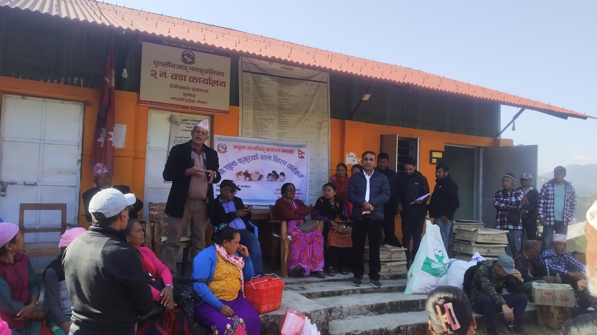 स्याङ्जा ४ मंसिर । “मासुमा आत्मनिर्भर तथा स्वस्थ मासु उत्पादन कार्यक्रम” अन्र्तगत पुतलीबजार नगरपालिकाले कुखुराका चल्ला र दाना बितरण कार्य सुरु गरेको छ ।
