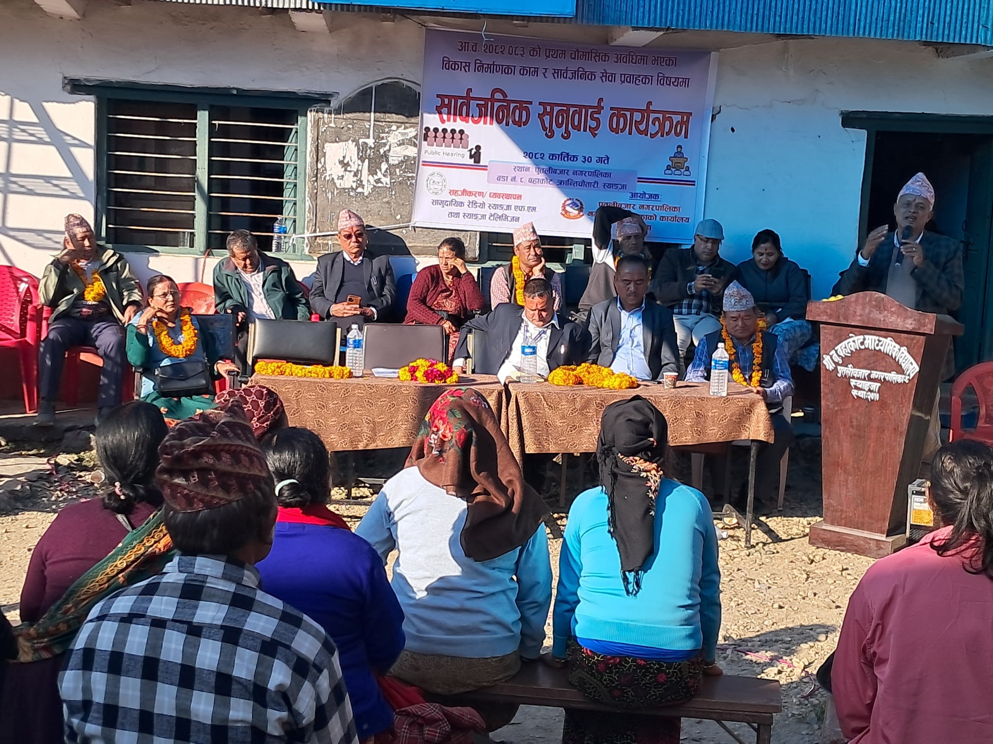 कार्यक्रममा स्थानीय गौतम सिंह ठकुरी, प्रेमबहादुर खाणँ, रामचन्द्र पोख्रेल, जवानसिंह गुरुङ, भुवन शाही, रनमाया थापा, जिवन शाही, सुभि थापा, टेककुमारी नेपाली, आइ बहादुर गुरुङ, खुमबहादुर दर्जी, थमकुमारी राना र धीरज ठकुरी लगायतलेसडकको स्तरोन्नती, विद्युत, खानेपानी, कृषिमा अनुदान, कैलाश गुफाको बाटो र प्रवद्र्धन, योजना निर्माणमा जनसहभागिता लगायतका विषयमा जिज्ञासा तथा सुझावहरु राख्नुभएको थियो ।