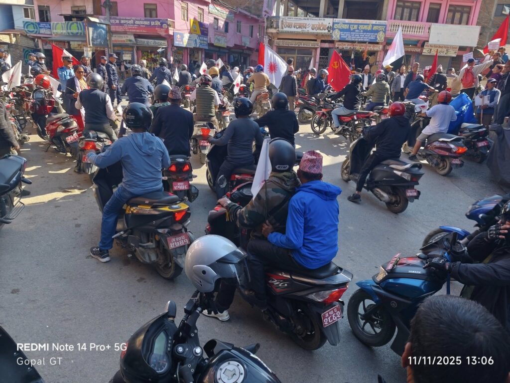 स्याङ्जा सदरमुकाम अर्थात पुतलीबजार बाहेक अन्य १० पालिकाका नगर तथा गाउँ कमिटिले संविधानको रक्षार्थ मंगलबार मोटरसाईकल ¥याली गरेर शक्ति प्रर्दशन गरेका हुन् ।