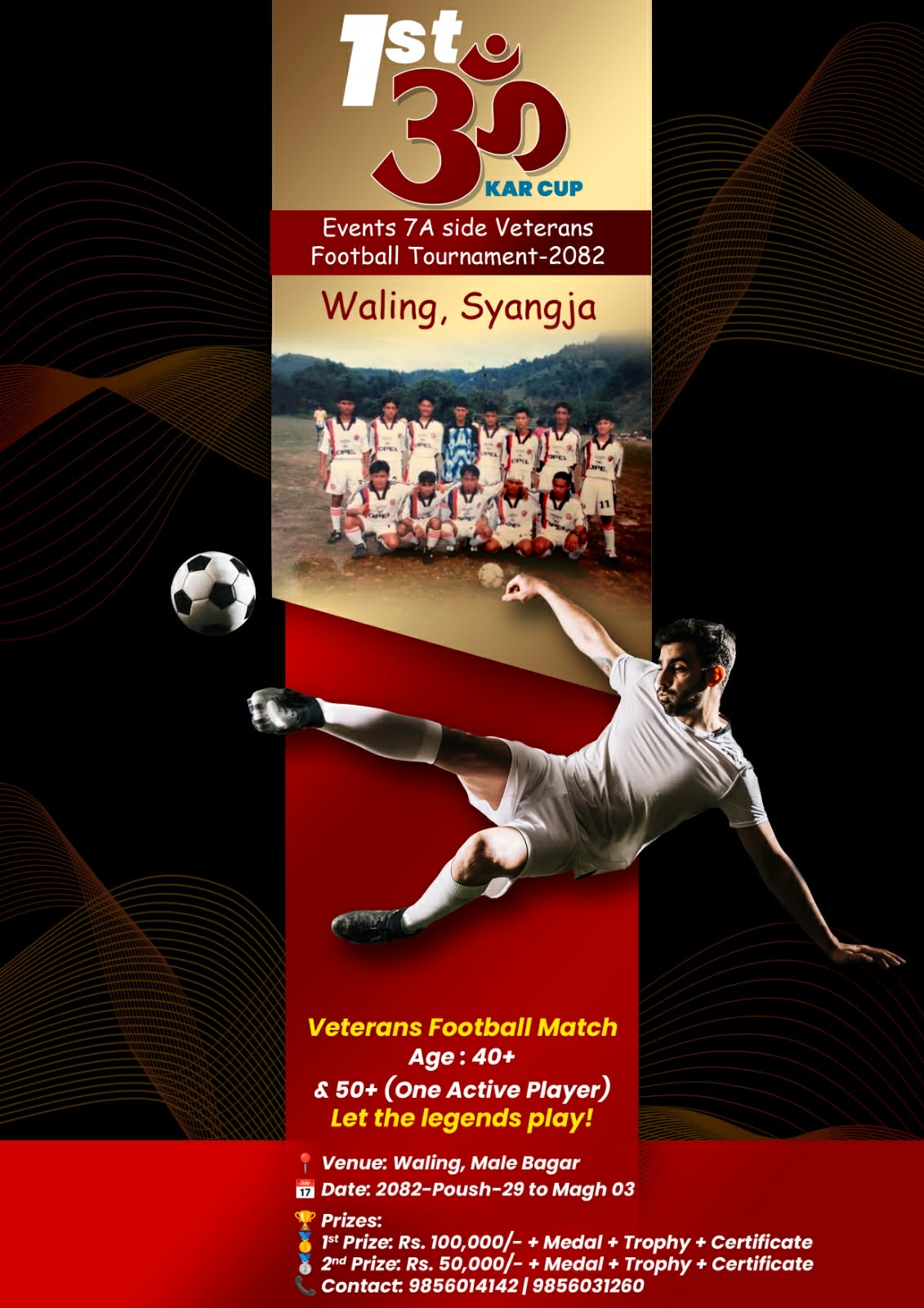 स्याङ्जा २७ मंसिर । वालिङमा प्रथम ओमकार कप आयोजना गरिने भएको छ । ओमकार इभेन्टस हब वालिङद्वारा प्रतियोगी खेल हुने भएका हो ।